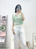 Amazon Comércio Exterior Transfronteiriço Atacado de Roupas Europeias e Americanas Verão 2025 Novo Tricô Listrado de Lapela de Manga Curta