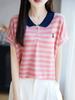 Blusa polo listrada estilo coreano, estilo slim fit, manga curta, tricotada, temperamento urbano, moda outono e verão 2024