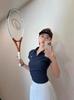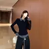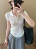 Verão Novo Americano Gola Polo Ajustado Cintura Ombro Direito Nicho Camiseta Puro Desejo Sexy Sexy Top Ins