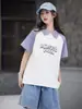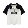 Camiseta Infantil de Algodão Puro com Gola Polo Color-Block 2025 Verão Novo Meio Zíper Simples Ajustada Moderna