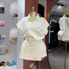 Roupas Femininas Transfronteiriças Europeias e Americanas 2025 Novo Outono Casual Gola Polo Solto Manga Curta Tops Conjunto de Saia Assimétrica