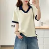 Estilo Novo de Verão 2025 Estilo Universitário Curto Doce Gola Polo Versátil Patchwork Camiseta de Tricô de Manga Curta