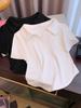 Algodão 2025 Novo Design de Manga Curta Nicho Camiseta Feminina Top Curto Verão Bordado Manga Curta Gola Polo