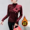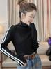 Camisa feminina de gola alta com forro de lã, estilo coreano, popular na internet, outono e inverno, manga comprida, camiseta feminina slim fit, moderna, 2025
