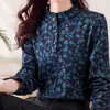 Nova Camiseta Floral Solta Outono e Inverno 2025 Manga Longa Roupa de Trabalho Base Diária Roupa de Trabalho Roupas Versáteis Diárias