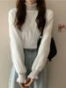 Camisa Branca de Gola Alta com Renda na Barra para Mulheres, Popular Neste Ano, Estilo Novo para Outono e Inverno com Top de Malha na Borda Interna