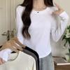 Camiseta Outono 2025 Fenda Cor Sólida Manga Longa Moda Feminina Camiseta Básica Estilo Coreano Trbottomy Estudante Casaco Solto