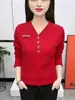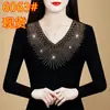 Nova Camiseta de Malha Estilo Outono 2026 para Meia-idade e Idosos Estilo Coreano Elegante Roupa de Mãe Gola V Strass Hot-fix Manga Longa Camisa Camada Interna Camada Base