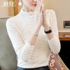 Camiseta versátil de malha de renda estilo coreano com gola alta média, justa, para usar por baixo, outono 2022, moderna, estilo ocidental, top vazado de manga longa