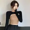 Camiseta de manga comprida feminina outono emagrecimento estilo puro desejo gola alta base interna camisa slim fit emagrecimento spice girls top curto moderno