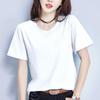 Atualize 80 mulheres de manga curta de algodão mercerizado verão feminino redondo decote em V solto básico algodão camiseta top camiseta geração cabelo