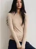 Camisa Básica Feminina Outono/Inverno Tencel Modal Cashmere Slim Cor Sólida Amiga da Pele Camiseta Tricô de Luxo Leve