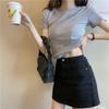 T-shirt de ombro branco mulheres de manga curta verão novos ins slim-fit emagrecimento umbigo exposto curto tempero menina colar quadrado cardigan top
