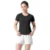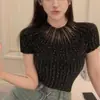 Camiseta de Tule Transparente com Sensação Fresca de Seda de Gelo Feminina Manga Curta Novo Estilo Gola Redonda Ombro Reto Malha Slimming Top Versão Curta