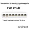 O Switch de Monitoramento de Segurança Gigabit Mercury MERCURY8 suporta a instalação de MCS1508M na parede