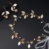 Acessório de Cabeça de Noiva Tiara de Strass Fita Folha Dourada Faixa de Cabelo Acessórios para Vestido de Noiva Joias Acessórios de Cabelo para Casamento Adorno de Cabeça
