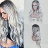 Europeu e Americano transfronteiriço longo cabelo encaracolado COS cinza gradiente anime peruca feminina nova fibra química cobertura de cabeça cheia