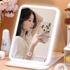 Espelho de mesa inteligente com LED para maquiagem, ideal para penteadeiras em quartos femininos ou para mesas em dormitórios estudantis.