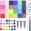 Caixa com 12 compartimentos Decoração de Lantejoulas para Arte de Unhas Borboleta Perolada 3mm Glitter Borboleta Joia Cola DIY Aplicável