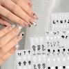 Adesivo de Unha Nail Art 3D Decalque Retrô Preto e Branco Rosa Corvo Coração Cruz Folha Adesivo DIY para Unha com Base Adesiva