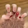 [Ritmo do Coração Escarlate] Manicure Vestível Manicure Pura Feita à Mão Outono e Inverno Novo Xadrez Francês Dourado Olho de Gato Elegante Clareamento