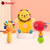 Chocalho de madeira de desenho animado brinquedos infantis brinquedos educativos