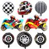 Balão de capacete de pneu 18 polegadas redondo preto e branco xadrez motocicleta alumínio filme balão corrida tema decoração