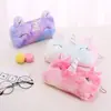 Bolsa de Lápis de Unicórnio Gradiente de Pelúcia Nova Transfronteiriça Coração de Menina Desenho Animado Bolsa de Armazenamento para Estudante Grande Capacidade Papelaria Fofa