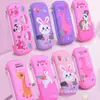 Estojo de Papelaria Kaba Bear 3D Tridimensional para Estudantes do Ensino Fundamental, Estojo de Alto Valor, Caixa de Armazenamento de Desenho Animado de Dupla Camada de Grande Capacidade