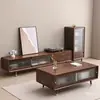 Móvel de TV de Madeira Maciça Mesa de Centro Combinação Moderno Simples Sala de Estar Móvel de TV Apartamento Pequeno Cor de Noz Armário de Chão