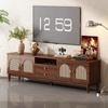 Móvel de TV com Estrutura de Madeira Maciça de Vime Retrô Combinação Mesa de Centro para Casa Armário de Armazenamento para Sala de Estar de Apartamento Pequeno Estilo Integrado Novo