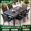 Mesas e cadeiras de madeira plástica simples personalizadas para áreas externas, combinação de mesa e cadeira para varanda e pátio externo, mesa e cadeiras de jantar ao ar livre à prova d'água e de sol