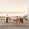 Sofá de Pátio Nórdico de Luxo Cadeira de Rattan para Varanda Cadeira de Teak e Rattan para Exterior Cadeira de Jantar Móveis de Design para Terraço