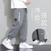 Calças de seda gelada masculinas, calças esportivas finas e soltas de verão com amarração nas pernas e nove pontos, calças de secagem rápida com ar condicionado, calças casuais masculinas