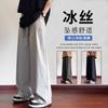 Calças Casuais Masculinas de Seda Gelo 2025 Verão Finas Soltas Versátil Tendência Ins Esportivas Americanas Calças de Perna Larga