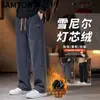 Calças Casuais 2022 para Outono e Inverno com Cordão, Calças Longas Forradas com Fleece para Homens, Calças Esportivas Camufladas Estilo Coreano para Jovens, Forradas com Fleece e Espessadas
