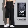 Calças de seda gelada masculinas, calças esportivas finas e soltas de verão com amarração nas pernas e nove pontos, calças de secagem rápida com ar condicionado, calças casuais masculinas