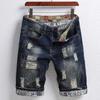 Verão Novo Mendigo Personalizado Ripped Patch Half Shorts Masculino estilo coreano Moda Raspagem Calça jeans de comprimento médio Rua na moda