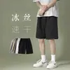 Calções de seda gelada para homens, calças respiráveis de cinco pontos para o verão, calças esportivas casuais masculinas de marca de moda jovem, microelásticas e soltas