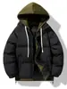 Comércio Exterior 2023 Inverno Novo Moda Masculina Tendência Jaqueta Grossa de Algodão Casaco de Algodão Masculino Tendência Cor Sólida com Capuz