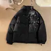 2025 Roupas de Algodão de Inverno Masculinas e Femininas Dupla Face Roupa de Casal Jaqueta de Marca Moderna Espessada com Gola Alta