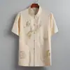 Camisa de Verão de Algodão e Linho de Manga Curta Masculina Estilo Chinês Casual Respirável Camisa de Linho Fina Manga Curta Lapela Top