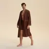 Robe Quimono Masculino de Cor Sólida Transfronteiriço, Cardigã Fino para Dormir, Roupão de Banho de Manga Longa para Primavera e Outono, Tecido Fino de Seda Sintética