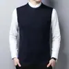 Colete de Lã de Inverno Masculino para Meia-Idade e Idosos Gola Redonda Cor Sólida Tricô Colete para Pai Sem Mangas Tricô Roupa Masculina