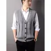 Cardigan Jacquard Masculino Colete Sem Manga Outono e Inverno Masculino Botões Tricô Estilo Coreano Solto Tendência Colete Suéter