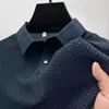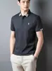 Camisa Polo de Seda de Gelo Camiseta de Manga Curta Masculina Bordada Tendência Slim Gola Lapela Verão Manga Meia Manga Fina para Pessoas Baixas