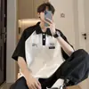 Camisa Polo Estilo Hong Kong Camiseta Masculina de Manga Curta Verão Estilo Japonês Moda Marca Pesada Camiseta Estilo Acadêmico Contraste Cor Solta Camiseta de Meia Manga