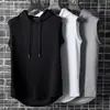 Colete sem mangas transfronteiriço Masculino Camiseta Casual Cor Sólida Moletom com Capuz Camiseta com Cadarço Roupa Esportiva Colete Fitness Masculino