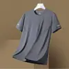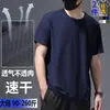 Camiseta de seda gelada de verão masculina, gola redonda, roupas de secagem rápida, manga curta, fina, respirável, meia manga, tamanho grande, top esportivo masculino, solto, moderno