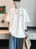 Camiseta Masculina de Manga Curta de Verão Marca de Moda de Hong Kong Tamanho Grande Gola Redonda Solta Camiseta de Manga Três Quartos Camisa Básica Estampada